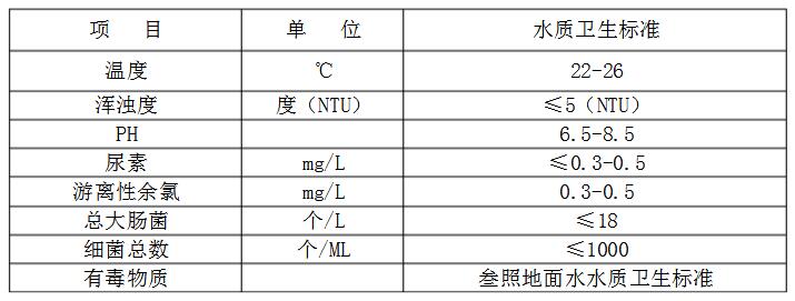 隨著人們生活水平的提高,游泳館已成為人們經常光顧的娛樂、休閑、體育鍛煉的重要場所之一,為保證人工游泳池的水質標準,我國目前已頒發了《游泳場所衛生標準》和《游泳池給水排水設計規范》兩個法規,其中對人工游泳池的水質標準規定如下: