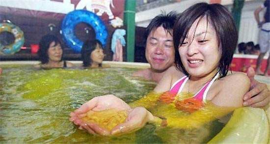 美國佛羅里達州著名的番茄浴,長期沐浴能讓人充分吸收番茄的營養成份。不過我想沐浴的時候會不會忍不住喝口番茄汁呢。