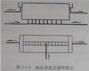 循環水經池端壁或側壁水面以下進水口進入,由設在池底回水口排除進行循環。